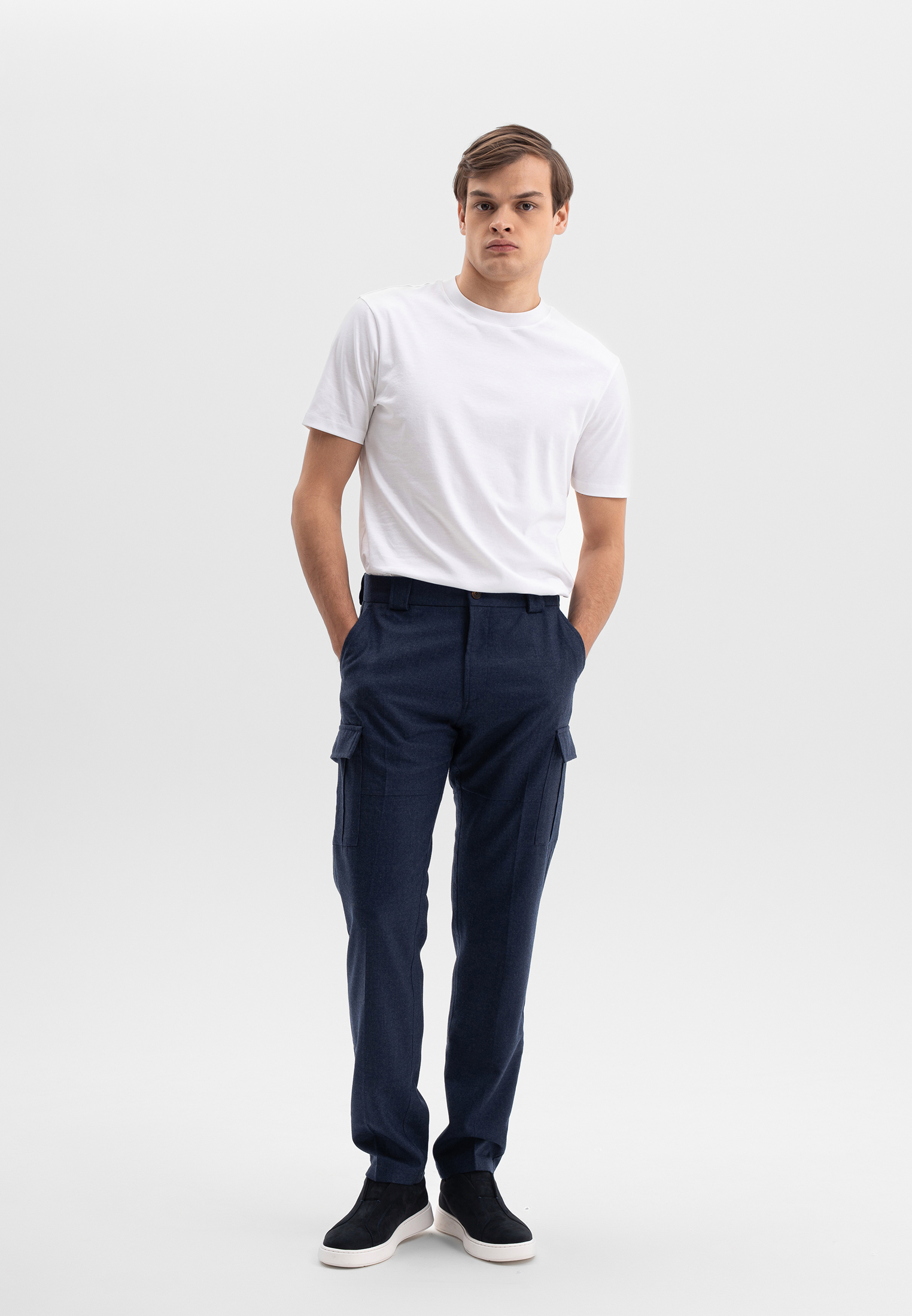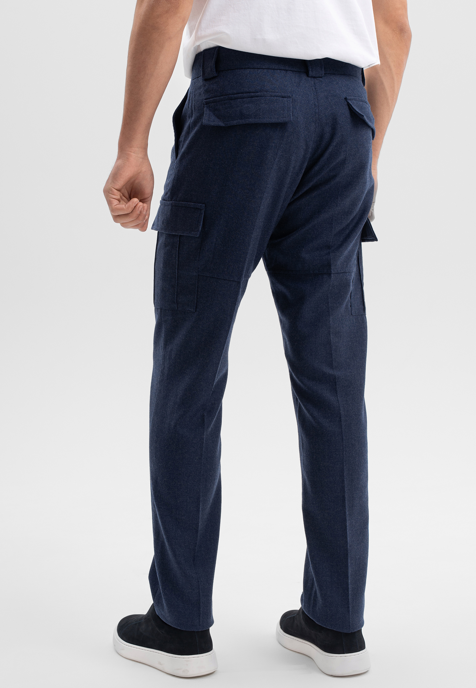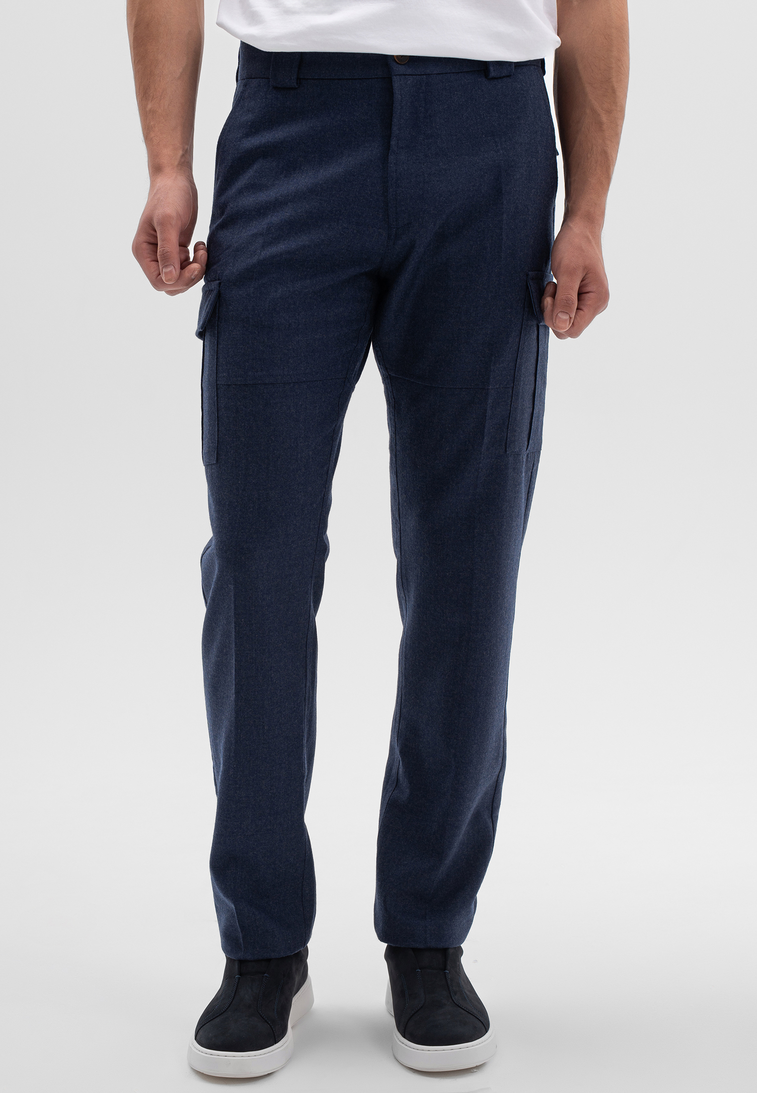 Синие брюки CORNELI выполнены из благородной смесовой ткани на основе шерсти с добавлением шелка и спандекса. Материал мягкий, пластичный и хорошо держит форму. Лаконичный крой подчёркивает силуэт и обеспечивает комфортную посадку. Универсальная модель для повседневных и элегантных образов.