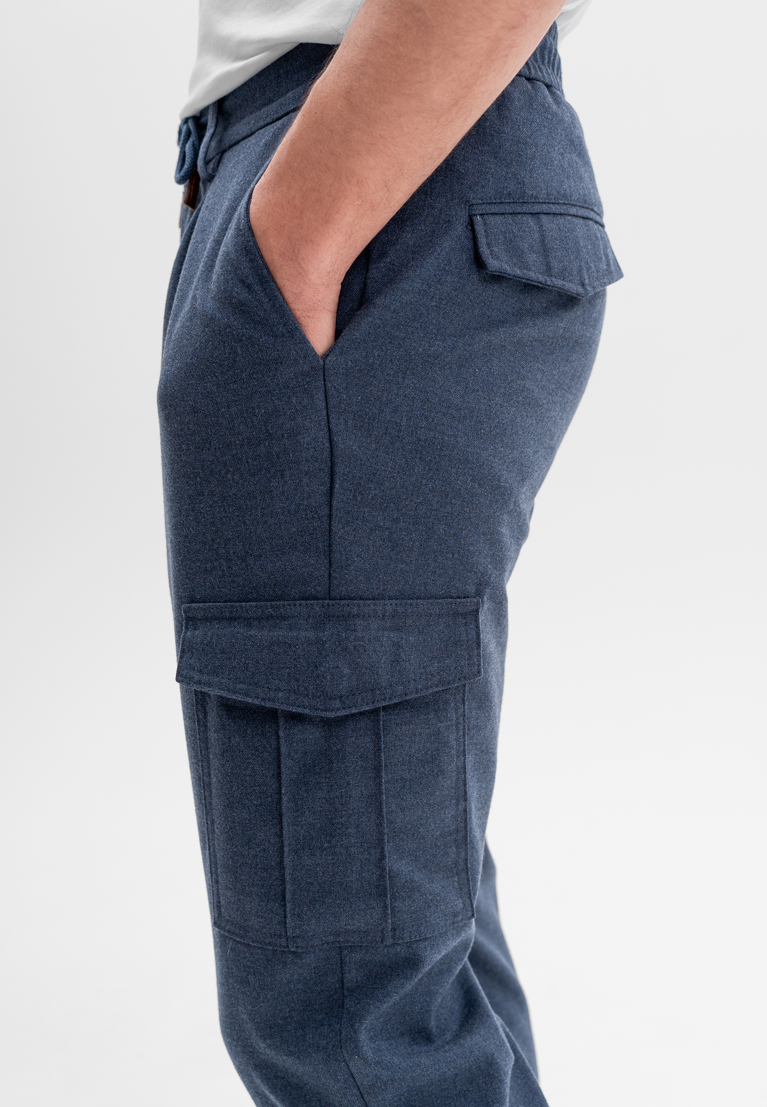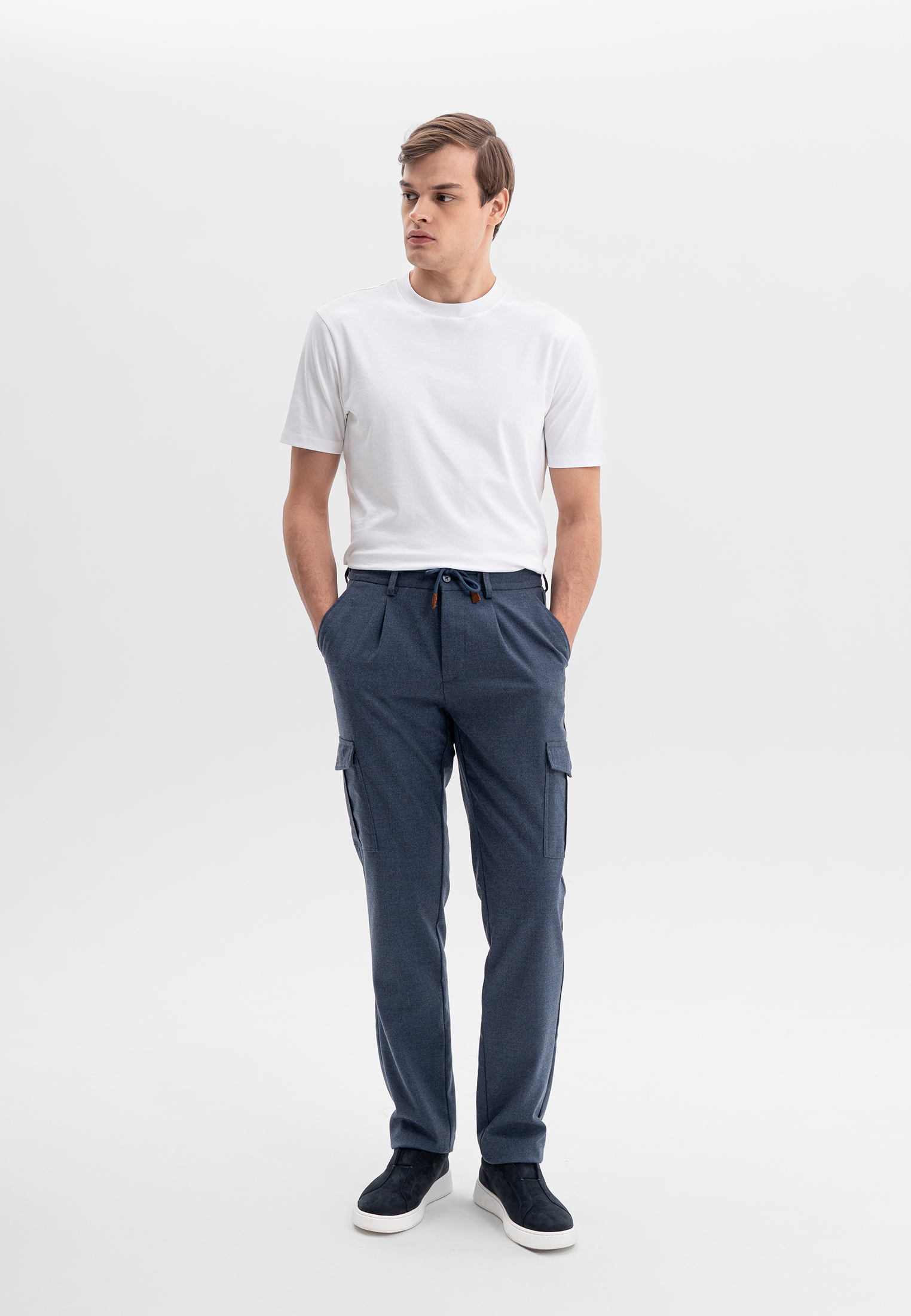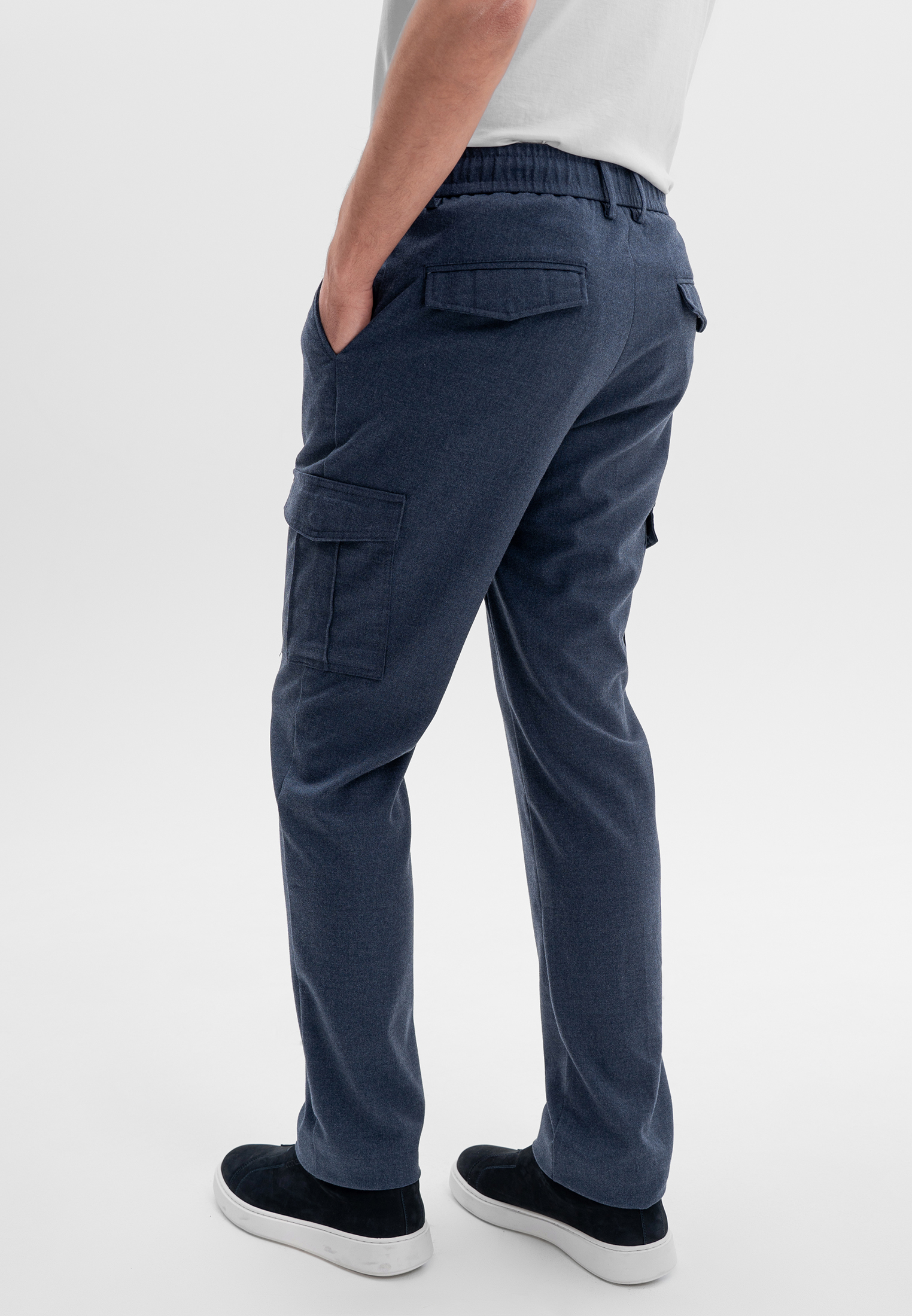 Синие брюки карго CORNELI выполнены из смесовой ткани на основе полиэстера и вискозы с добавлением спандекса. Материал мягкий, износостойкий и хорошо держит форму, обеспечивая комфорт в течение дня. Функциональные боковые карманы и эластичный пояс со шнурком формируют удобную посадку и подчёркивают современный, утилитарный характер модели. Подходят для повседневных и smart-casual образов.