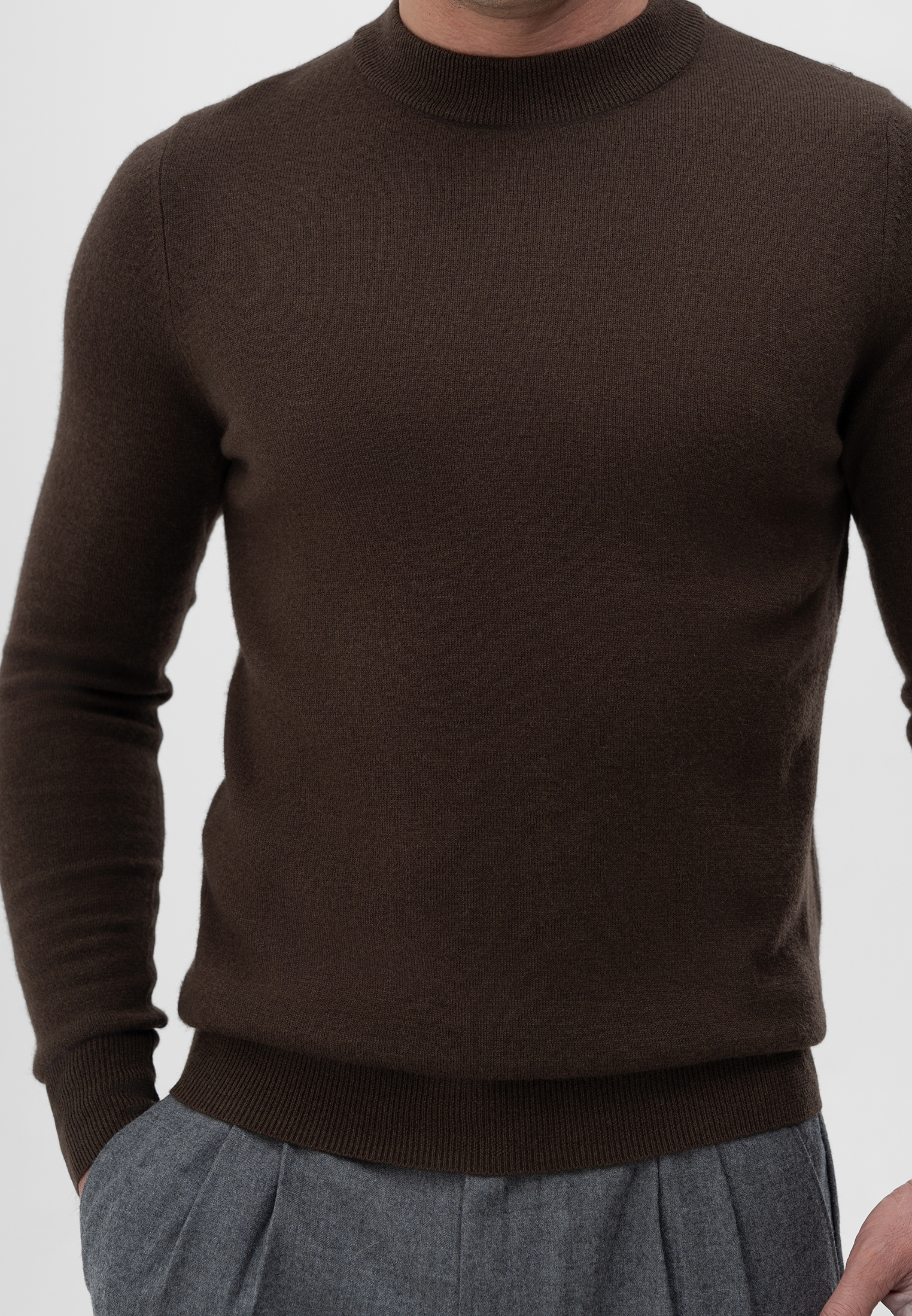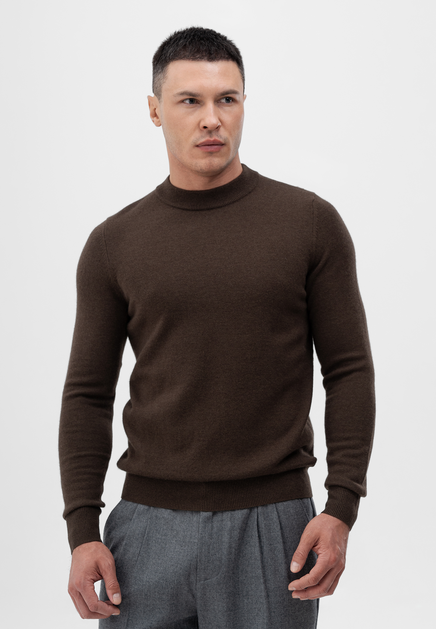 Джемпер цвета хаки. Выполнен из мягкой 100% шерсти. Модель прямого кроя с круглым вырезом и аккуратной резинкой по горловине, манжетам и низу изделия. Материал отличается приятной на ощупь фактурой и хорошо сохраняет тепло, обеспечивая комфорт в прохладное время года. Лаконичный силуэт делает джемпер универсальной базой для повседневных и деловых образов.