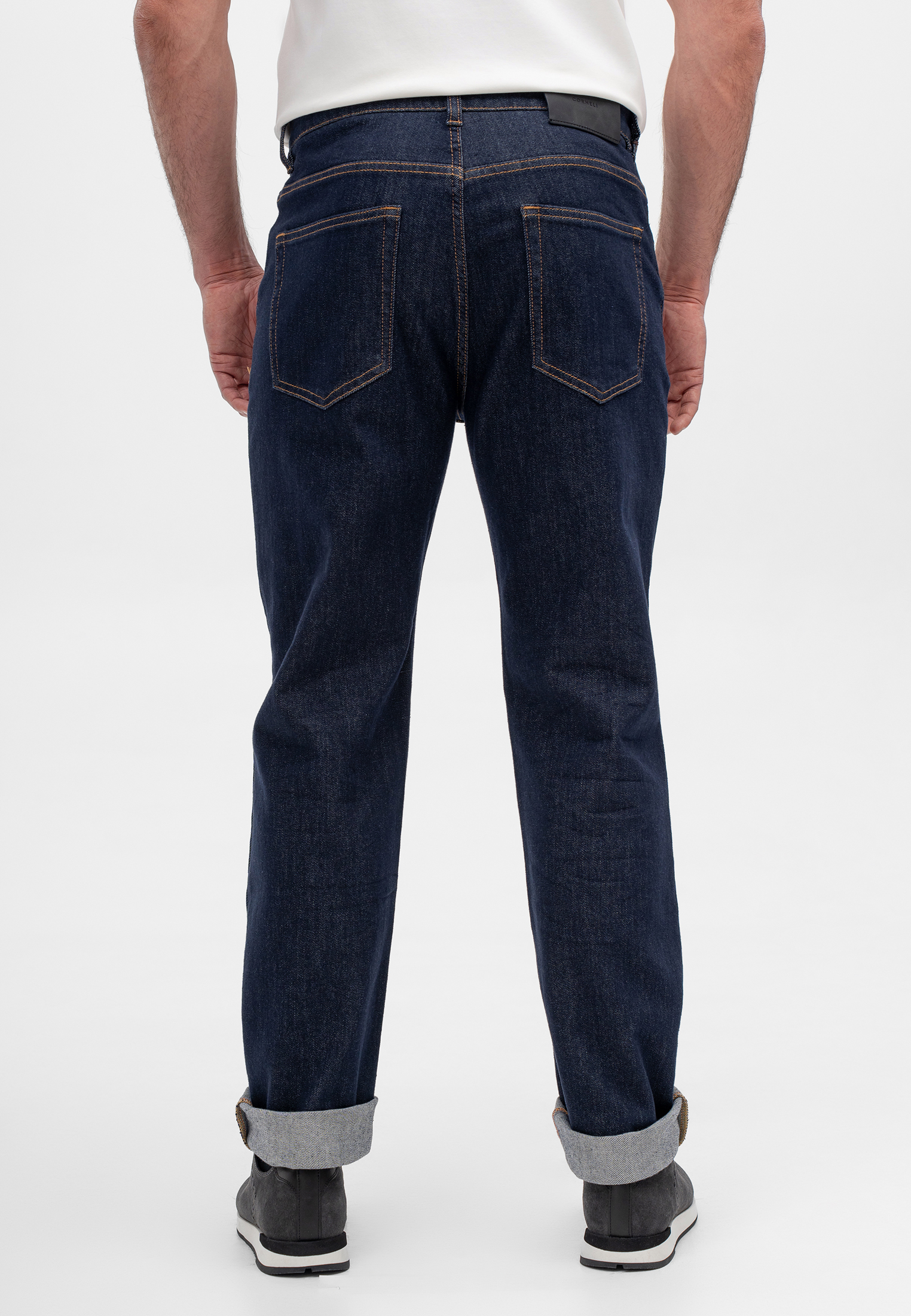 Джинсы тёмно-синего цвета — классическая модель, которая легко вписывается в повседневный и smart-casual гардероб. Выполнены из плотного хлопка с добавлением синтетического волокна, благодаря чему изделие отличается износостойкостью, хорошо держит форму и комфортно сидит по фигуре. Ткань приятна к телу и сохраняет аккуратный внешний вид даже при активной носке. Лаконичный дизайн и универсальный оттенок подчёркивают сдержанную эстетику и премиальное качество бренда CORNELI.