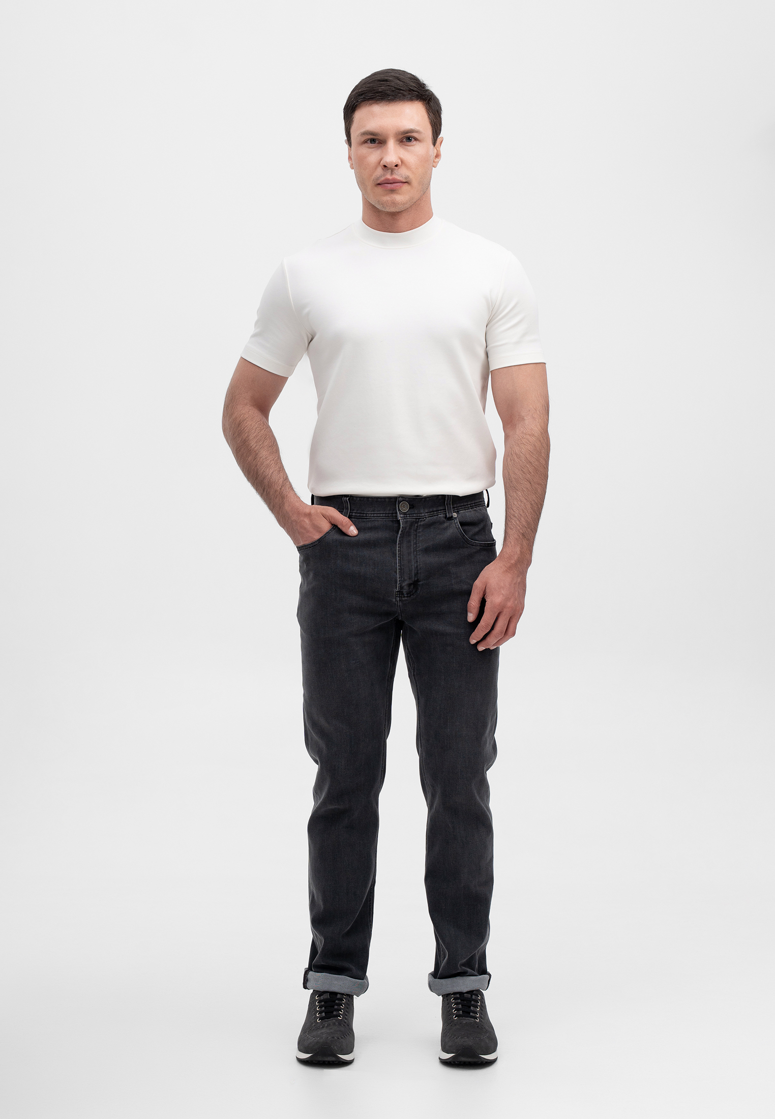Джинсы серого цвета — универсальная базовая модель для повседневного гардероба. Выполнены из хлопковой ткани с добавлением спандекса и шелка, благодаря чему изделие сочетает комфорт, мягкость и лёгкую эластичность. Материал приятен к телу, хорошо держит форму и обеспечивает свободу движений в течение дня. Классический крой и лаконичный дизайн делают джинсы подходящими как для casual-образов, так и для более сдержанных сочетаний. Минимализм и качество исполнения подчёркивают премиальный характер бренда CORNELI.