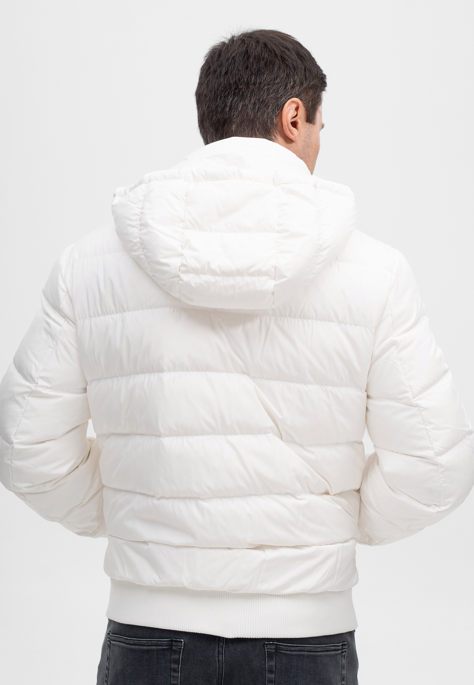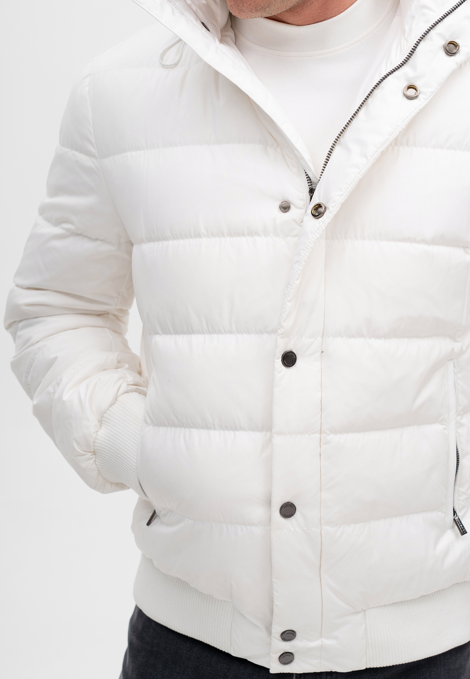 Короткая пуховая куртка белого цвета с капюшоном — современная модель для холодного сезона, сочетающая практичность и чистую эстетику. Верх выполнен из прочного полиэстера, который защищает от ветра и влаги, сохраняя аккуратный внешний вид. Наполнитель из белого гусиного пуха с добавлением пера обеспечивает высокую теплоизоляцию при минимальном весе. Объёмный капюшон, горизонтальная стёжка и эластичные манжеты создают комфортную посадку и делают модель универсальной для повседневного городского гардероба. Лаконичный дизайн подчёркивает премиальный стиль бренда CORNELI.
