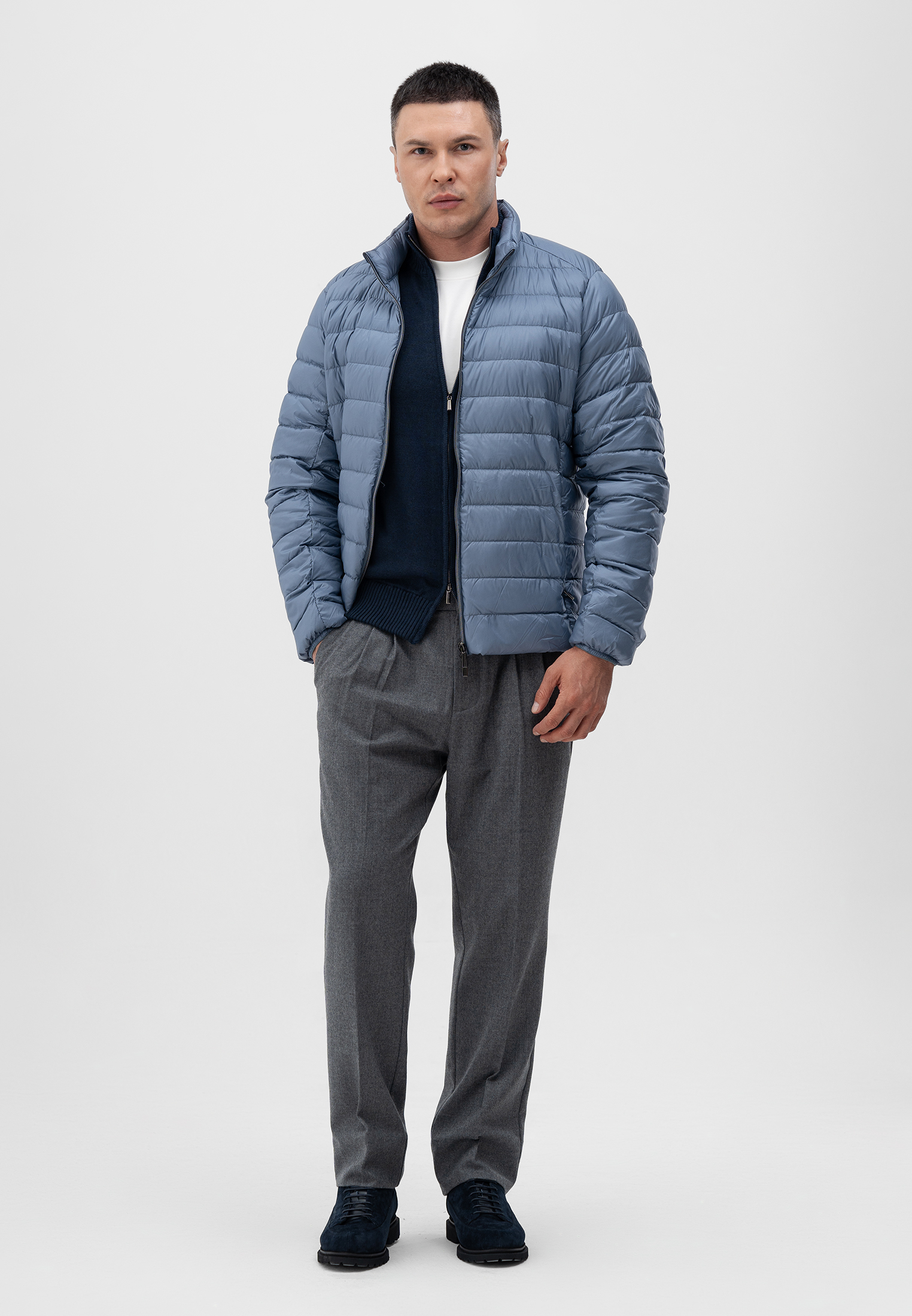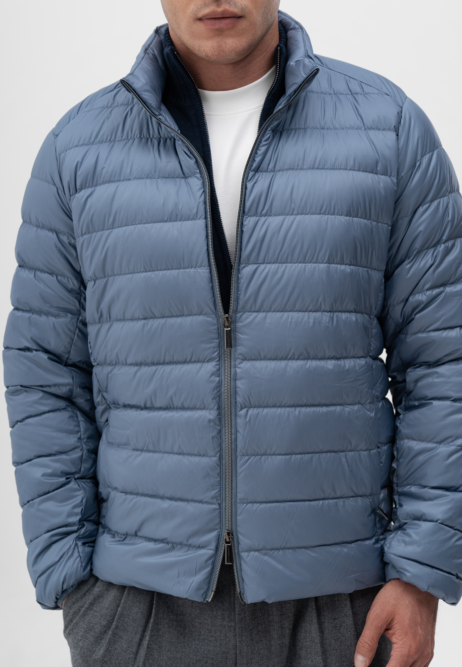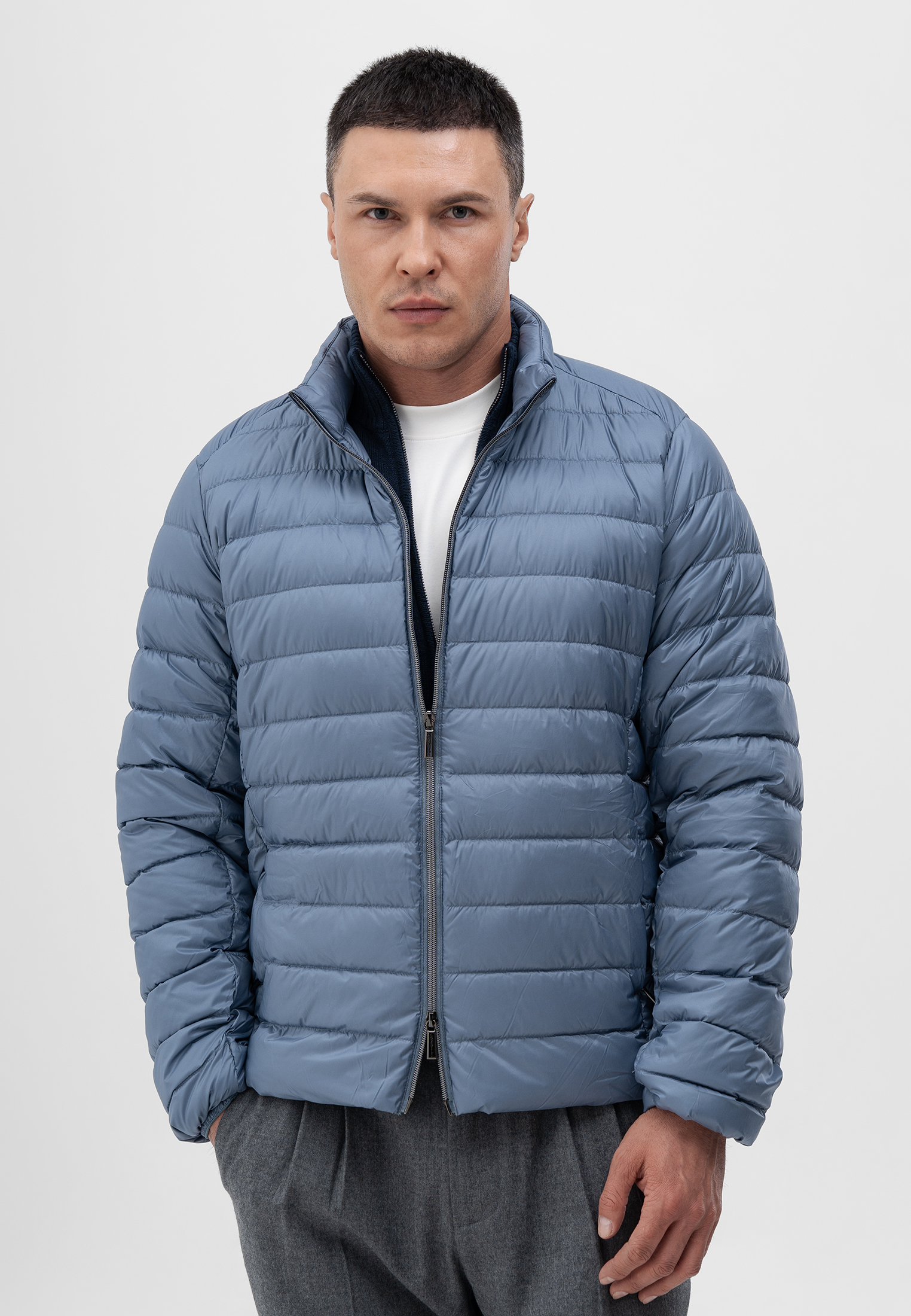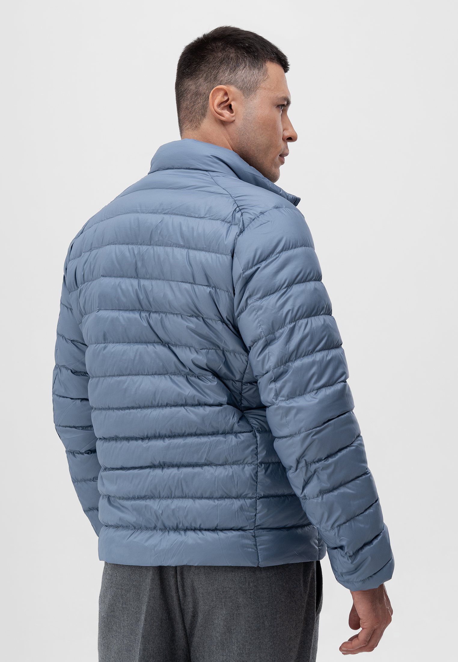 Куртка голубого цвета. Выполнена из легкого и прочного полиэстера с подкладкой из нейлона. Модель прямого кроя с горизонтальной простежкой и застежкой на молнию. Утеплитель из пуха белой утки и пера обеспечивает надежную теплоизоляцию при минимальном весе. Универсальный вариант для межсезонья и прохладной погоды — комфортная, компактная и современная.