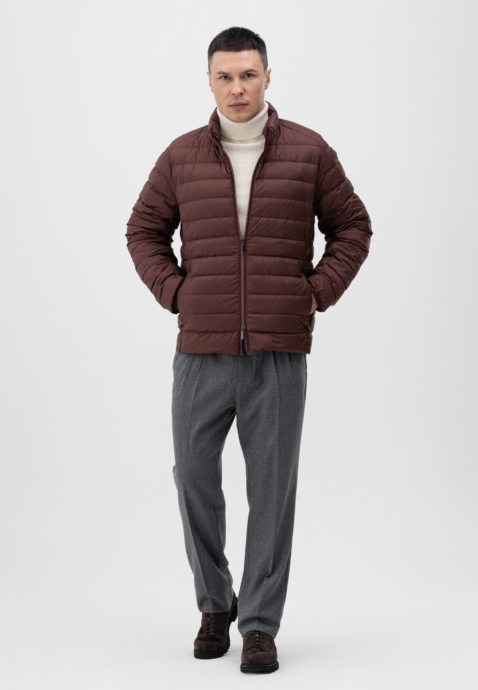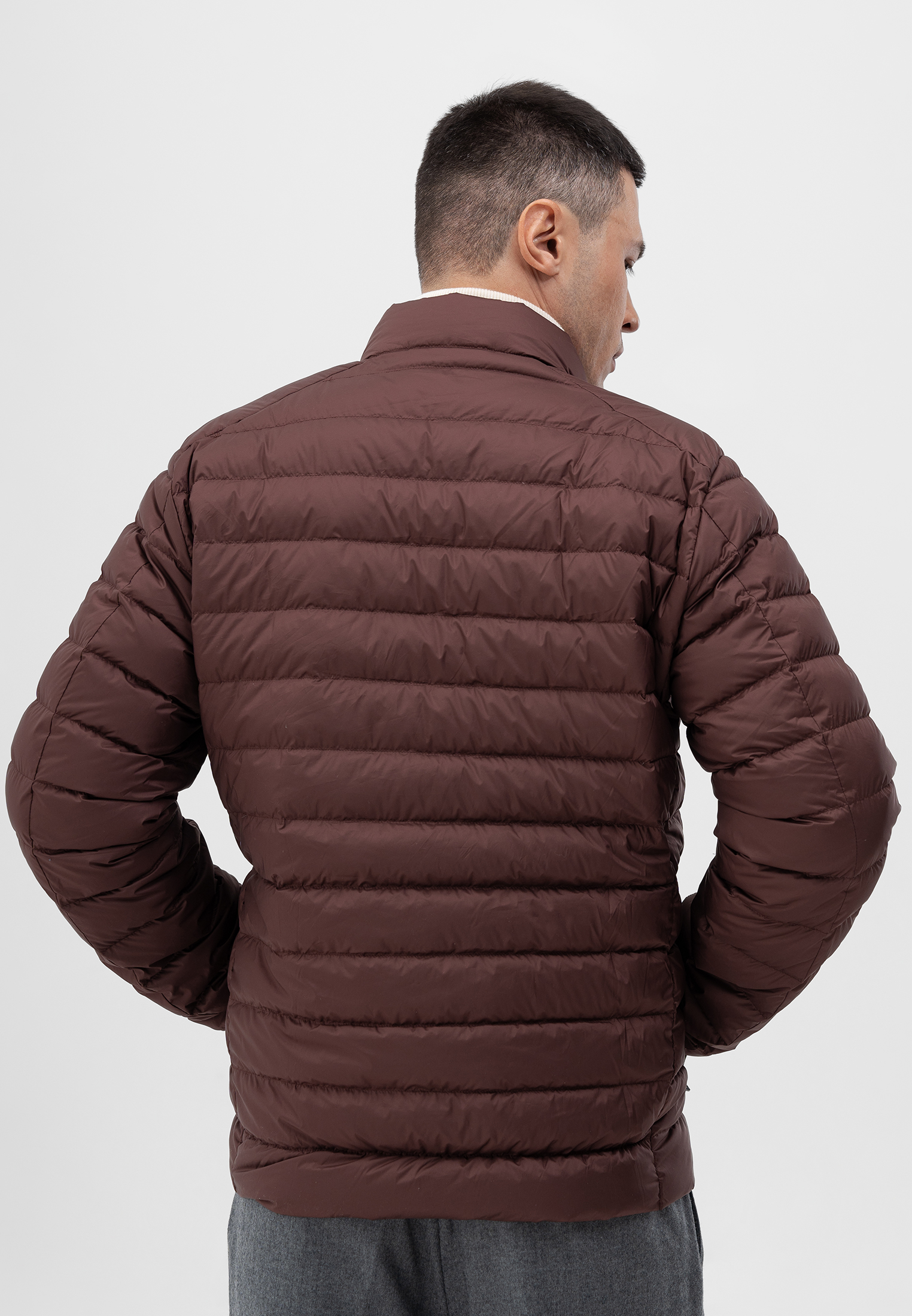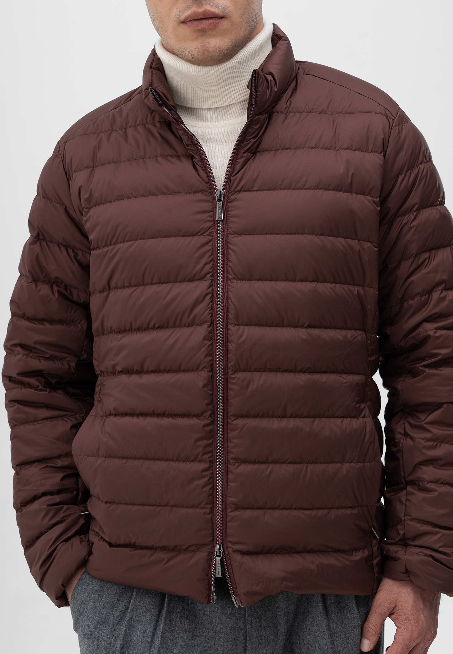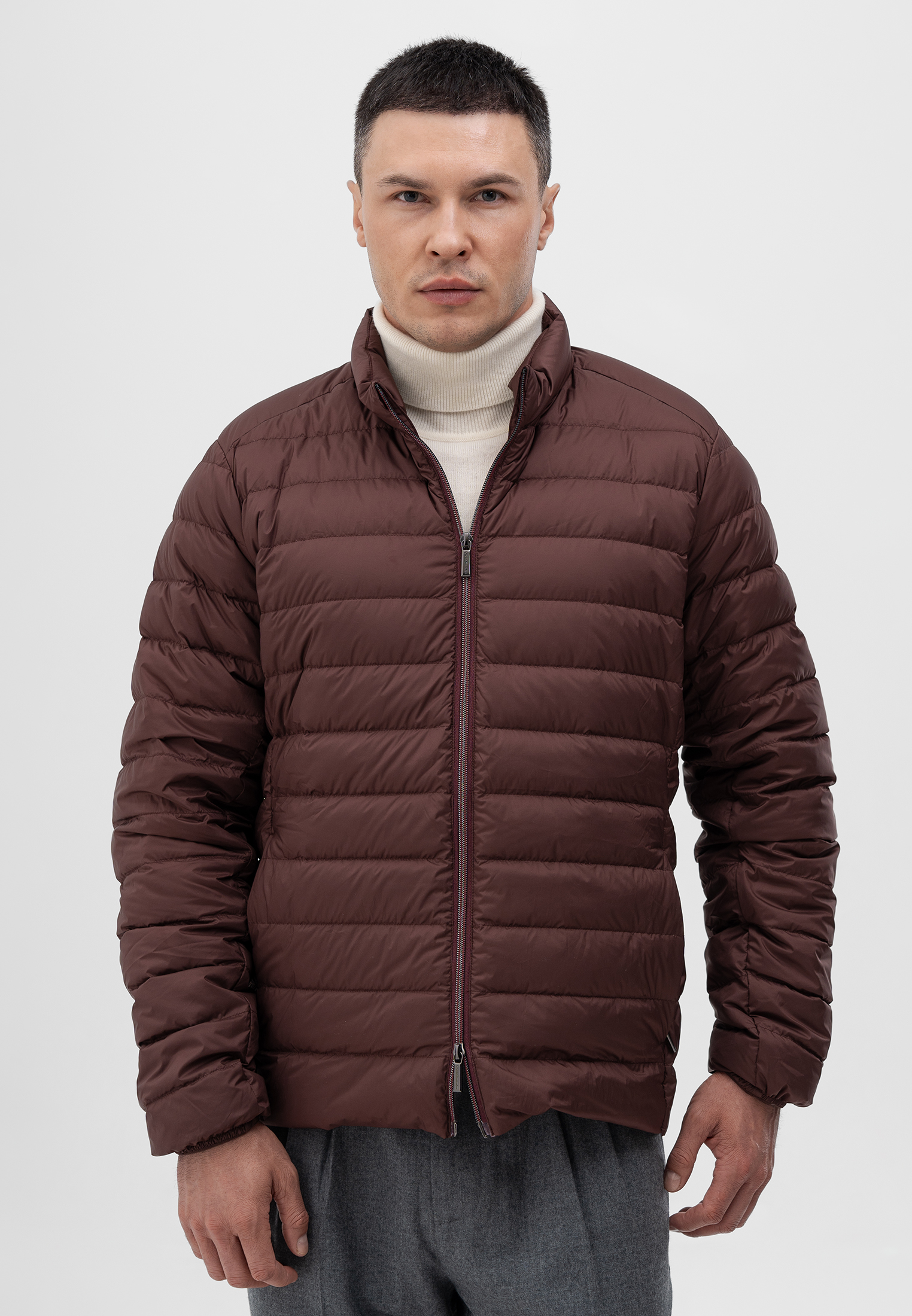 Куртка бордового цвета. Выполнена из легкого и прочного полиэстера с подкладкой из нейлона. Модель прямого кроя с горизонтальной простежкой и застежкой на молнию. Утеплитель из пуха белой утки и пера обеспечивает надежную теплоизоляцию при минимальном весе. Универсальный вариант для межсезонья и прохладной погоды — комфортная, компактная и современная.