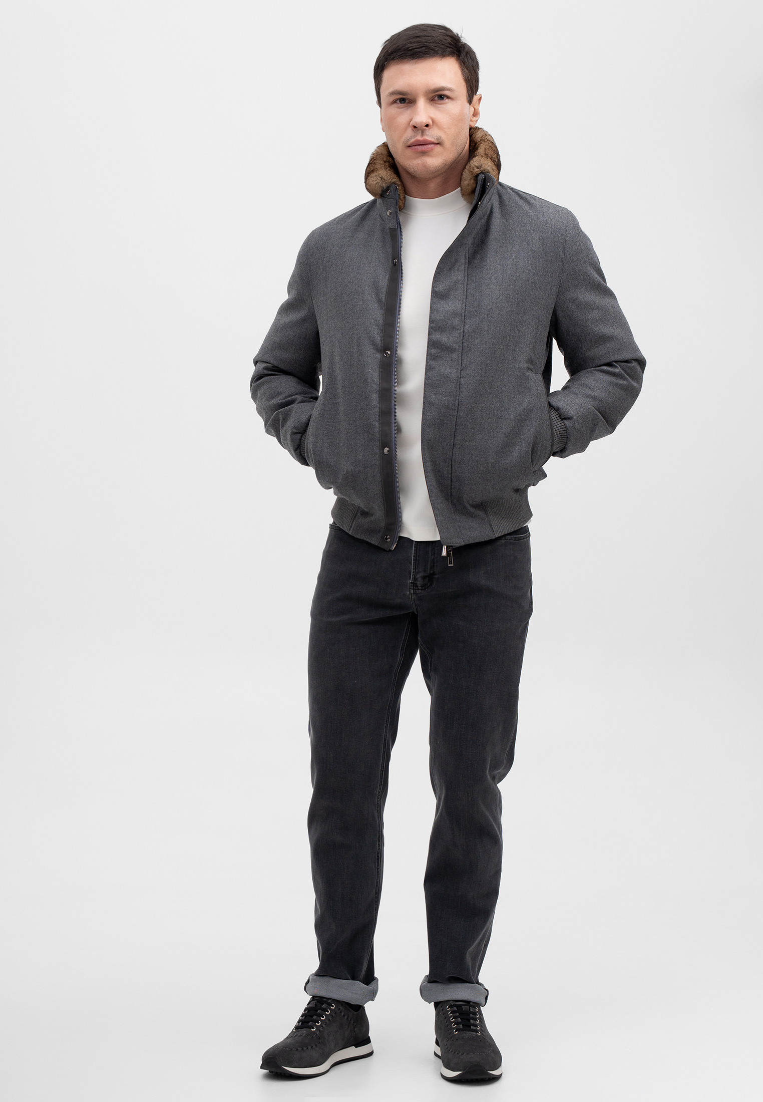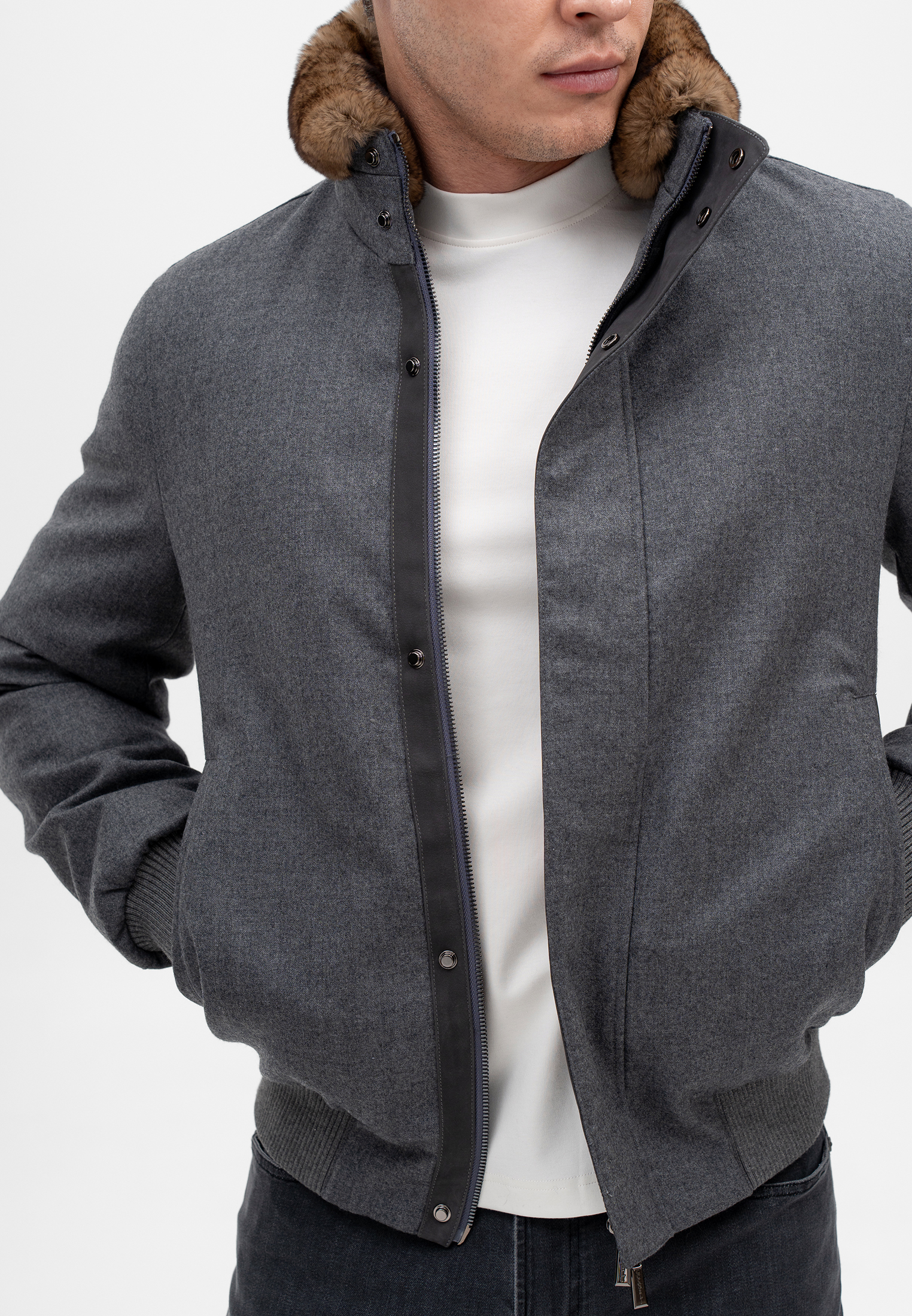 ПРЕМИАЛЬНЫЙ ШЕРСТЯНОЙ БОМБЕР С МЕХОВОЙ ОТДЕЛКОЙ ИЗ БОБРА CORNELI