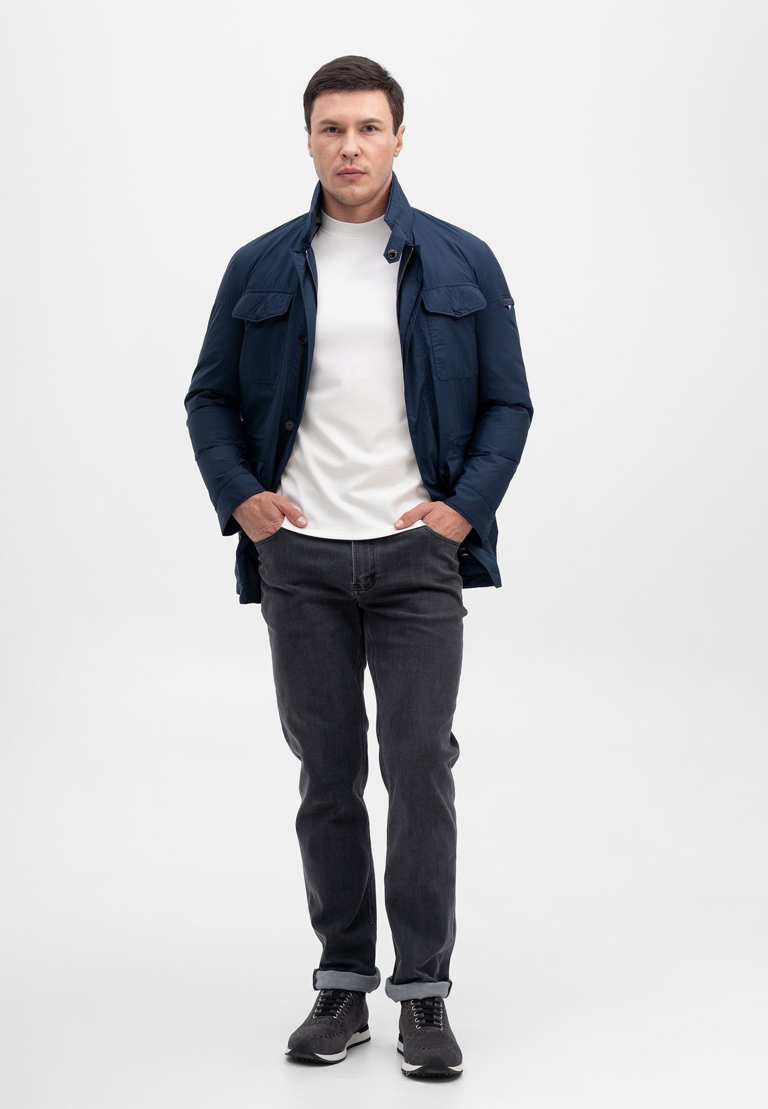 Пуховая куртка тёмно-синего цвета — практичная и элегантная модель для прохладной и холодной погоды, выполненная в сдержанном городском стиле. Верхняя ткань из 100% полиэстера отличается износостойкостью, лёгкостью и хорошей защитой от ветра и влаги. Наполнитель на основе белого гусиного пуха и пера обеспечивает комфортное тепло без утяжеления изделия. Прямой крой, функциональные карманы и лаконичный дизайн делают модель универсальной для повседневных и деловых образов. Куртка гармонично сочетает комфорт, функциональность и премиальное качество, подчёркивая современный характер бренда CORNELI.