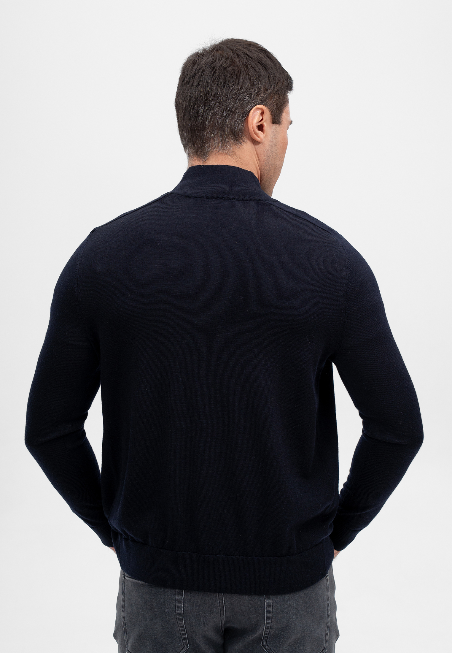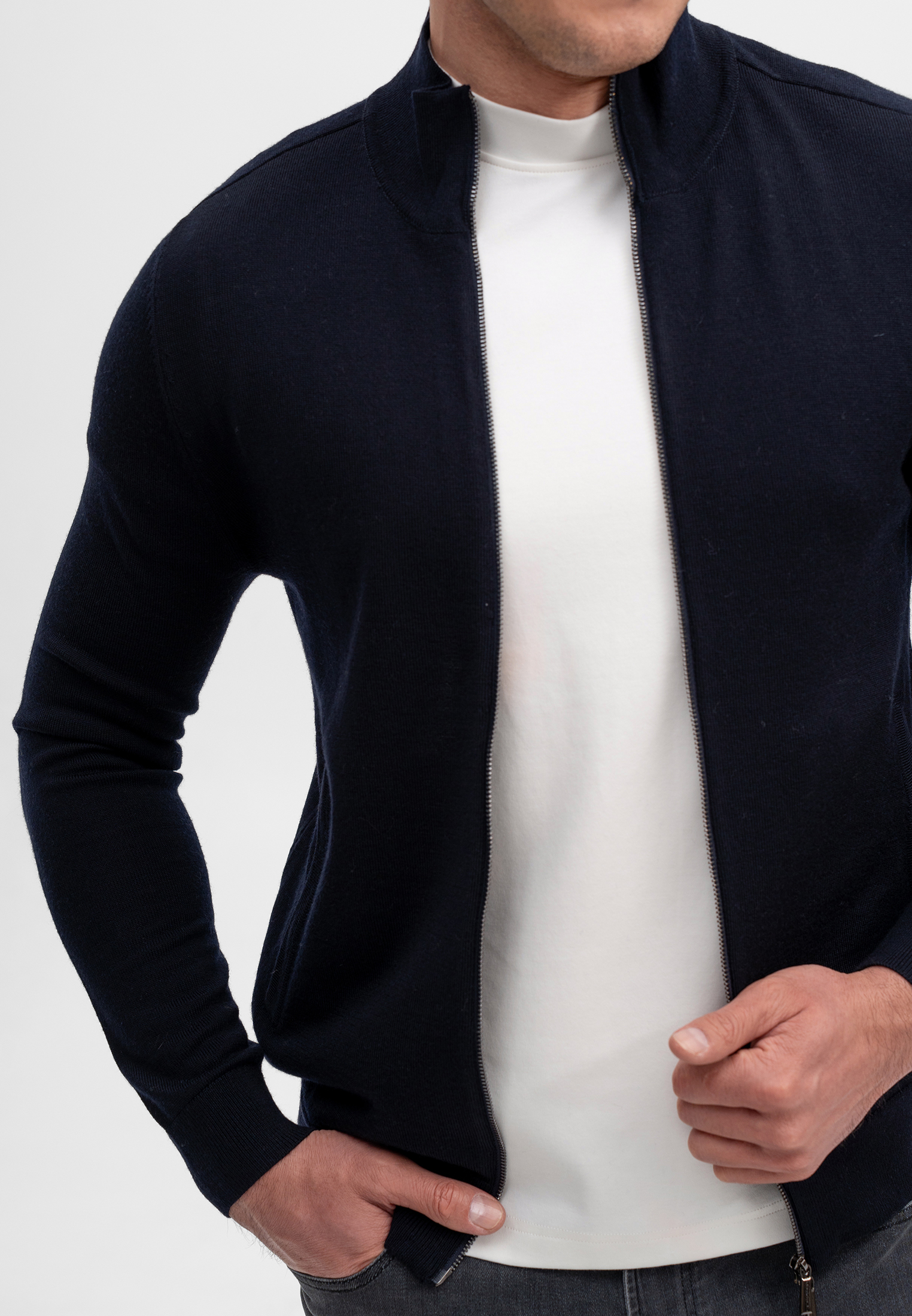 Шерстяной кардиган тёмно-синего цвета — универсальная модель для прохладного сезона, сочетающая комфорт и сдержанную элегантность. Выполнен из 100% натуральной шерсти, которая отлично сохраняет тепло, оставаясь при этом лёгкой и дышащей. Прямой крой и застёжка на молнию придают изделию современный и лаконичный характер. Минималистичный дизайн подчёркивает премиальный стиль бренда CORNELI и делает кардиган идеальным выбором для повседневных и smart-casual образов.