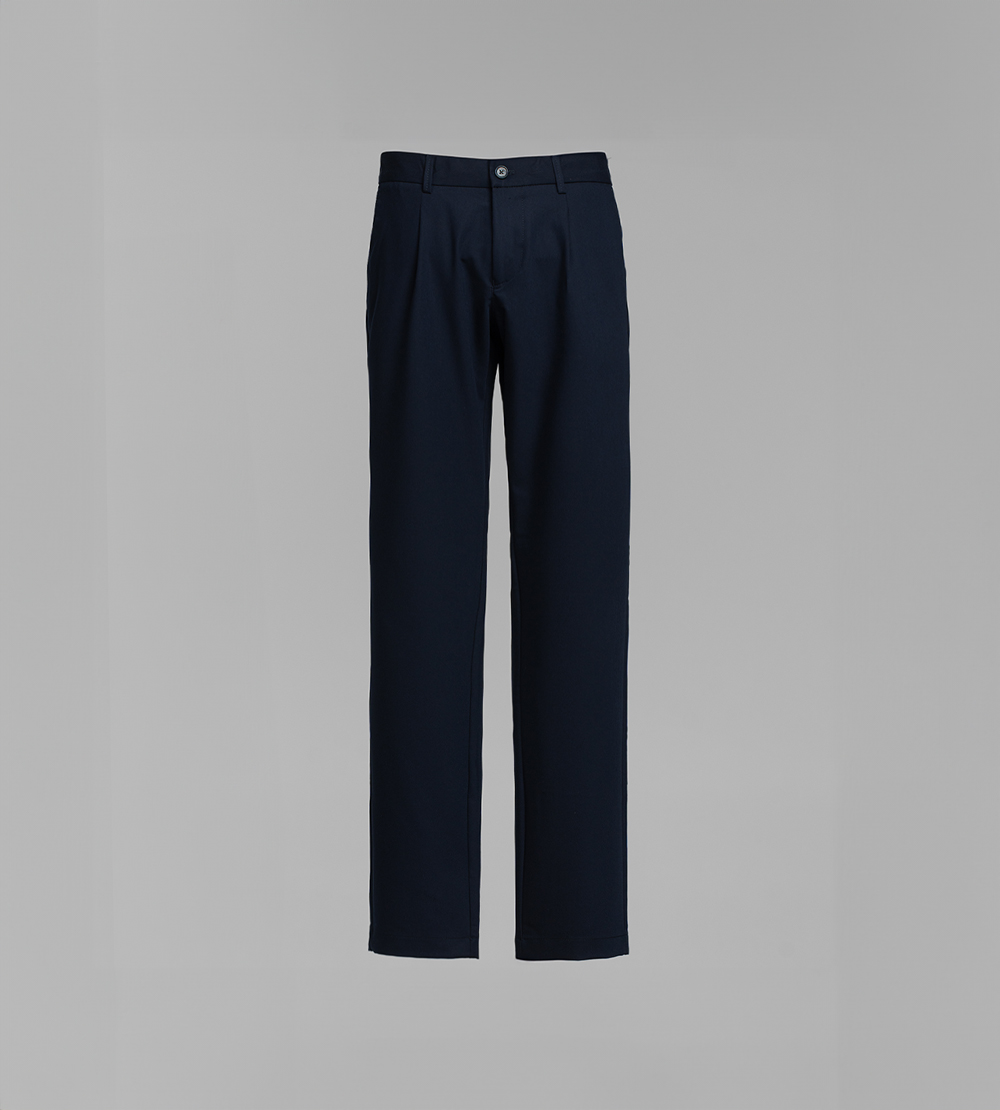 Брюки с защипами. Из шерсти с добавлением полиамида и эластана. Пояс со шлевками для ремня. Боковые прорезные карманы. Застежка на пуговицу и молнию
