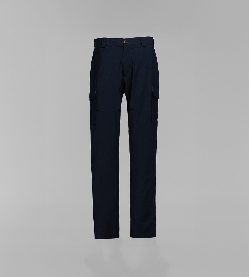Брюки прямого кроя. Из шерсти с добавлением эластана и шелка. Пояс со шлевками для ремня. Боковые прорезные карманы. Сзади прорезные карманы на пуговицах. Декорированы горизонтальными швами. Застежка на пуговицу и молнию